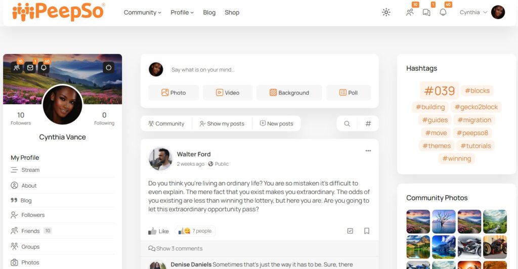 With PeepSo, profiles become a core part of how the community works rather than an afterthought.
