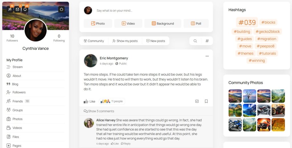 PeepSo supports that kind of structure especially well inside WordPress. Creators can shape profiles, custom profile fields, groups, pages, and other community features around the needs of their audience. That gives the community a stronger identity and makes the experience feel purposeful instead of generic.